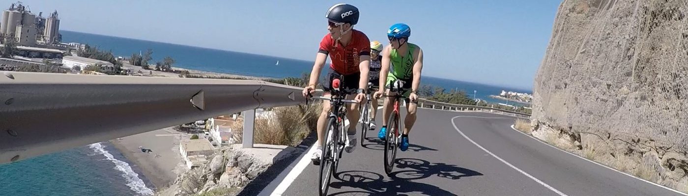 Leirin ohjelmaan kuului paljon kovatehoisia yhdistelmäharjoituksia. Pääosin vedin pienimuotoisen triathlonin aina aamupäivisin: Tunnin uinti El Pajarissa, jossa kovia lyhyitä vetoja, rannalle juoksuja, veteen juoksuja, vedestä lähtöjä, aallokkouintia ym. kivaa. Tämän jälkeen suhteellisen ripee vaihto pyörälle, eli ei millään paniikilla mutta ei myöskään turhaa aikailua. Pyöräosuus tuli usein vedettyä Sorian laaksossa ja sorian mäkeen. Pyöräosuuden kesto 1h – 2h sisältäen kovia keskimäärin 20min vetoja välillä tasaisella ja välillä ylämäkeen. Sorian laakson nopein kellottamani aika ”km 14” kohdalta ”km 0:aan)” oli 17min 45sek. Maasto oli hyvin tasaista noin 1-2% laskua koko matka mutta hyvin voimakkaalla vastatuulella.